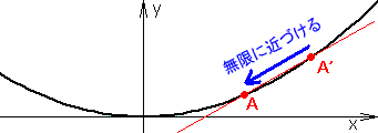 おっ!そのやる気、なかなかいいじゃない。それじゃ、y=ax2上に点A ( x , ax2 )と、Aに近い点A'( x+t , a(x+t)2 )を考えます。