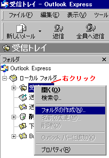 次に、表示されているフォルダの[受信トレイ]下に、[ウイルス?]という名前のフォルダを作ってみましょう。