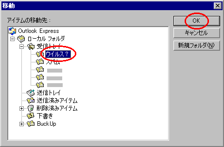 移動先フォルダを、先に作った[ウイルス?]に指定します。