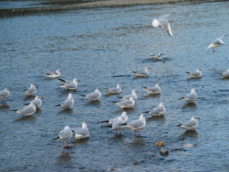 歩き、早めに鴨川沿いの宿へ。鴨川には、水鳥たちが沢山居ました。どなたか、この鳥の名前をご存知有りませんか?(ユリカモメの冬羽姿だそうです、おせろさま、お知らせくださって有難うございました!!)