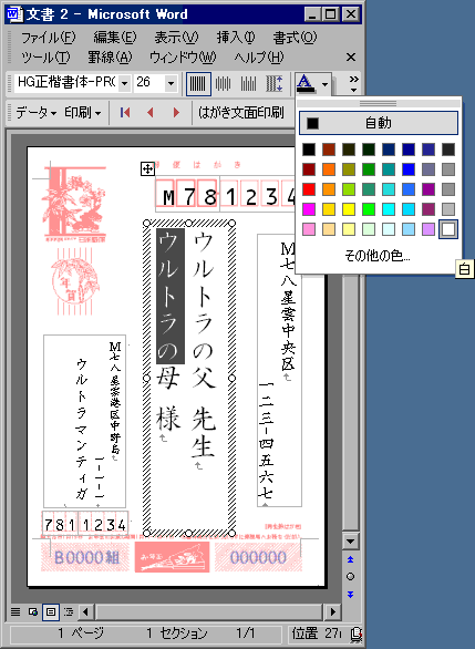 EXCEL・WORDによる葉書宛名印刷(Ver.XP)