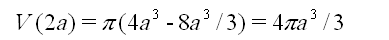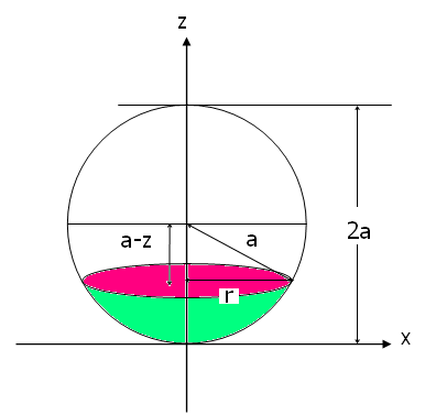 この式が本当に正しいか、z=2aを代入して、球体の体積になることを確認してみましょう。