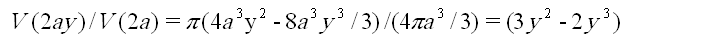 問題ないようなので、z=2ayと置いて、球体の切れ端の体積の、球体全体に対する比率を求める式を作ってみます。なぜ、z=2ayと置くかというと、y=1でスイカの直径になるので、切る時の目安にしやすいからです。