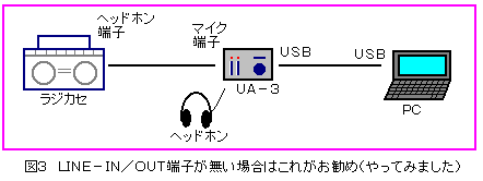 ( 1) ラジカセからWAV録音ハードの構成:![]() ![]() UA−3導入の理由はこちら 使ってみたソフト: